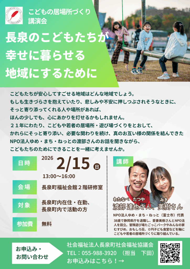 講 師:NPO法人ゆめ・まち・ねっと 代表 渡部達也さん、美樹さん