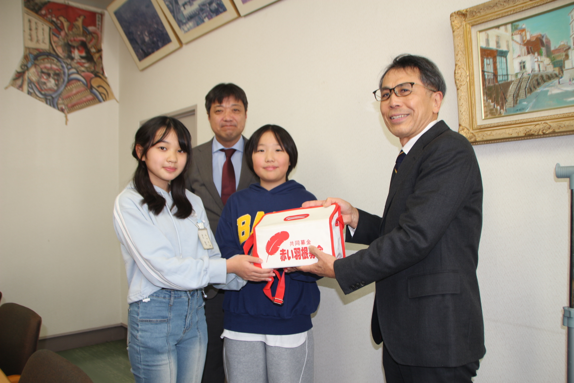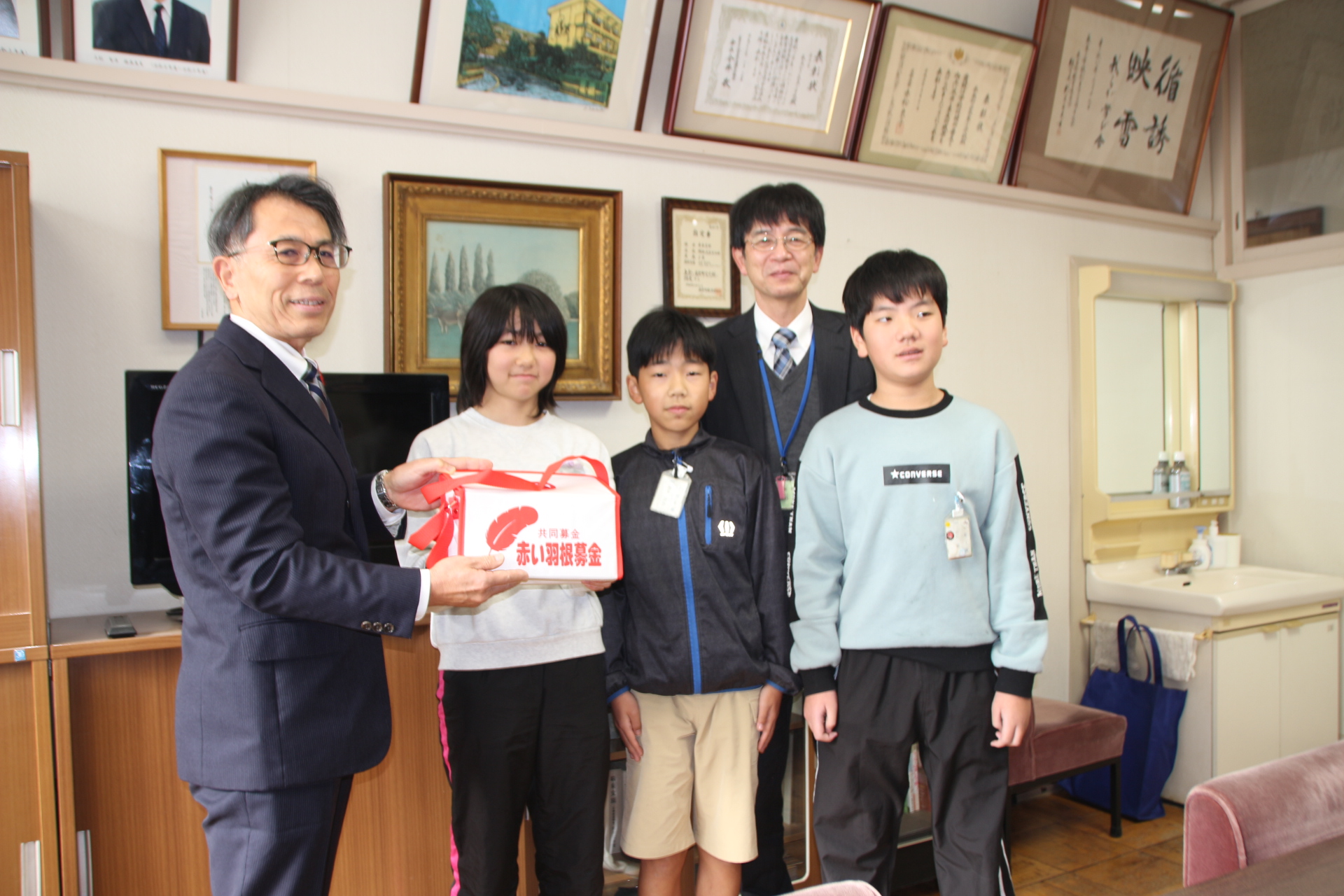 町内小中学校の児童・生徒の皆さんより、学校募金を受け取りました。